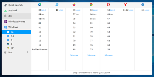 Our third browser, Safari on iPhone, can be tested on 25 different devices: